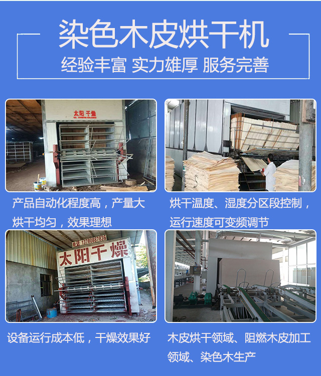 臨朐太陽(yáng)干燥設(shè)備有限公司是生產(chǎn)木皮烘干機(jī)、阻燃木皮烘干機(jī)、染色木皮烘干機(jī)的企業(yè),產(chǎn)品自動(dòng)化程度高,產(chǎn)量大,烘干均勻,效果理想。設(shè)備有人工進(jìn)板和自動(dòng)進(jìn)板兩種,烘干溫度、濕度分區(qū)段控制,運(yùn)行速度可變頻調(diào)節(jié),設(shè)備可人工出板和自動(dòng)出板,用戶可根據(jù)情況自由選擇。